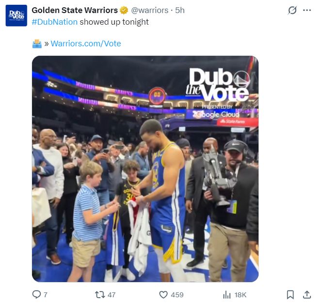 這場比賽斯蒂芬在父親戴爾的母隊獲得了巨大的支持聲,就如同庫裏在布魯克林被高呼MVP一樣,比賽結束後很多的球迷都來圍繞著萌神,37歲的庫裏為多位小球迷都進行了簽名。