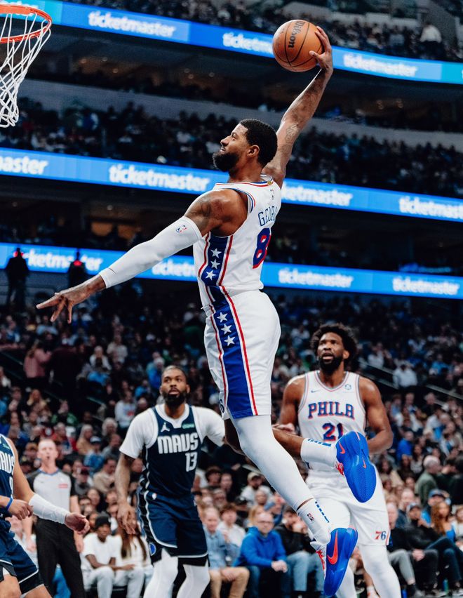 替補席的格蘭姆斯場均31.1分鍾,拿到11.3分,命中率46.9%,三分命中率40%,他的效率值比喬治高不少,更別說場均28.5分的恩比德、場均27.2分的馬克西,場均17分的埃奇庫姆,很明顯喬治在這支費城就連老四都不太穩。
