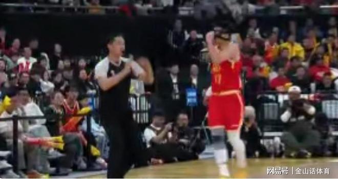 再說說孫銘徽本場比賽的一些爭議場麵。比賽進入第三節中段,孫銘徽外線持球,在遭遇陳盈駿嚴防時,突然跳起張開雙腿幹撥三分,想造一個陳盈駿防守犯規,由於陳盈駿成功躲開,近在咫尺的裁判並沒響哨,孫總頓時發飆,手指裁判一頓輸出,結果裁判不慣毛病,直接上前吹他技術犯規。