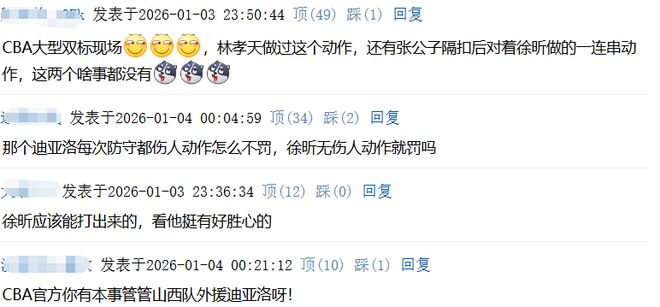 一個慶祝動作就要罰款2萬?這就有點離譜了,2萬數目雖然不大,但對於徐昕來說,也是筆不小的支出,畢竟徐昕現在拿的還是B類合同,據說年薪並不高,這無疑是筆重罰。CBA公司的做法也有點讓人看不懂,評論區球迷們也是紛紛表達了不滿,並且還舉出了很多例子打臉CBA,有球迷認為:當時徐昕做出這個動作的時候,裁判都沒有表示,迪亞洛那麽多防守傷人動作怎麽就不處罰?