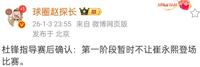 然而在客場和北控男籃比賽之後,杜鋒正式回應了崔永熙的情況,他表示崔永熙還在康複中,希望更好的保護他。