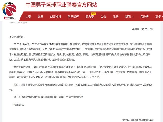 深夜11點,CBA公司給山東隊主教練邱彪,正式開出了一份大罰單!顯然,這就是一個衝動的懲罰!