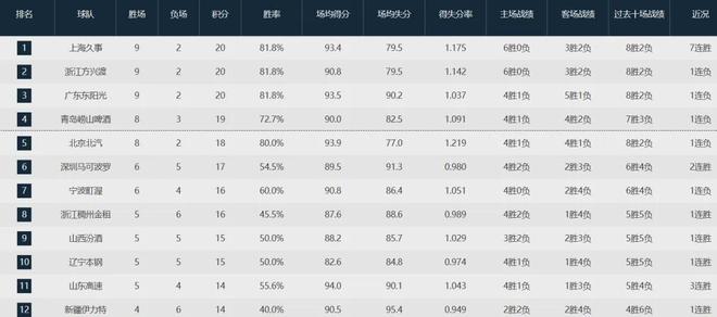 本賽季至今,廣東隊以9勝2負位列聯盟第三,浙江隊以5勝6負排名聯盟第八。