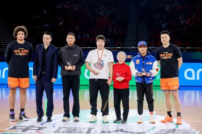 慶典儀式上,CBA聯盟向上海久事男籃贈送紀念禮物,這份禮物不僅是對過去三十周年的激情回望,更是對未來攜手向前的美好期許和憧憬。隨後,上海久事男籃主帥盧偉和球員李弘權、洛夫頓為球隊的“最佳第六人”——用鏡頭定格曆史的媒體工作者資深攝影記者洪南麗老師、保障日常點滴運轉的工作人員代表劉惟,以及看台上不離不棄的球迷代表袁嘉亮和胡毅豪,頒發三十周年紀念章。
