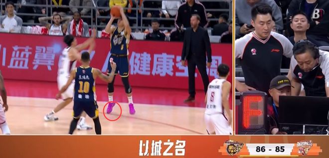 先來說說第一個問題,其實陳家政的三分球真的很難界定到底有沒有踩線(個人傾向於沒有),雖然在陳家政本人看來他肯定是沒有踩線的,但有一說一,像這種照片拿出來佐證有沒有踩線其實用處不大,一來這隻是一張靜態圖片,沒有拍到陳家政起跳瞬間鞋尖位移的情況;