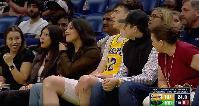 救球後的拉拉維亞因為慣性衝到了場邊觀眾席,隨後便絲滑的坐在一名女球迷身邊。