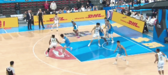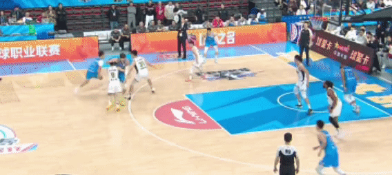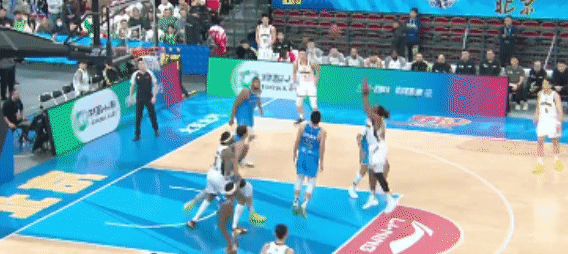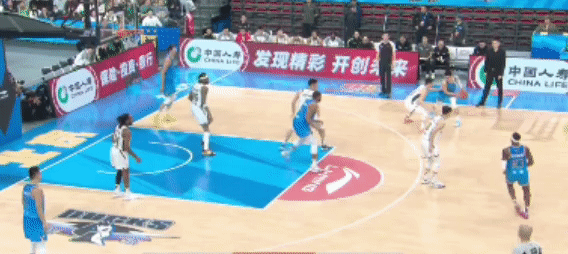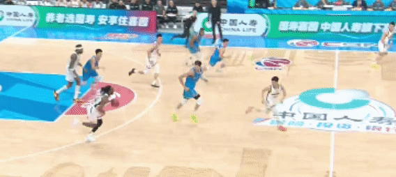 比賽開始後,兩隊都在打快,上一場比賽得到保留的趙睿,今天首發且狀態極好,他和周琦的配合很有默契度,一個快速助攻給到隊友,上籃拿分。