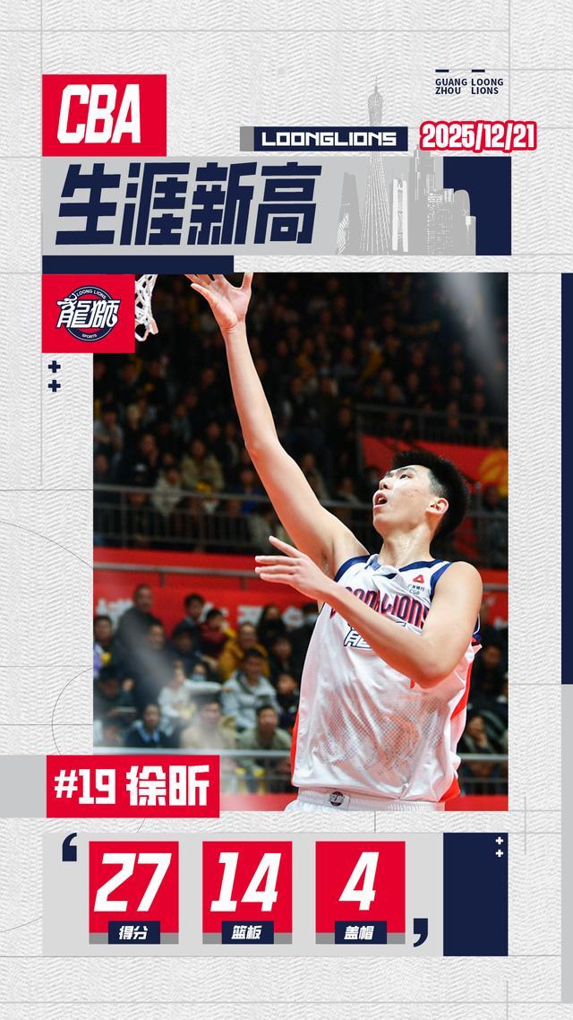 徐昕以27分14籃板4蓋帽的數據砍下生涯新高!!!