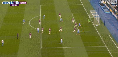 第29分鍾,呂特小角度破門,布萊頓1-0伯恩利