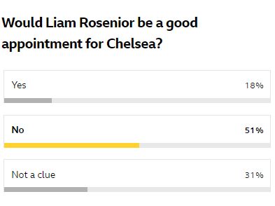 值得一提的是,51%的球迷認為羅西尼爾不是切爾西的理想選擇。