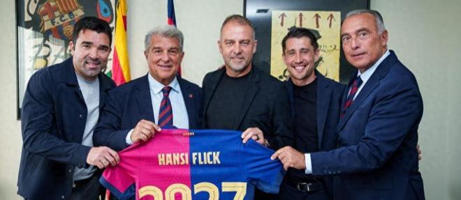 弗利克剛剛與巴薩正式續約至2027年。簽約儀式上,主席拉波爾塔攜體育總監拉法·尤斯特、技術總監德科以及傳奇球員博揚共同出席,彰顯了管理層對弗利克長期建隊計劃的支持。