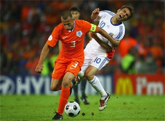 2004年歐洲杯,當時還是新人的海廷加,第一次代表荷蘭隊參加國際大賽。絕大多數新人遇上這種場合,都會小心翼翼,唯恐自己犯下錯誤。可是海廷加呢,踢得那叫一個莽。在荷蘭對陣捷克的經典之戰,海廷加在上下半場比賽分別吃到一張黃牌,被當值主裁請了出去。