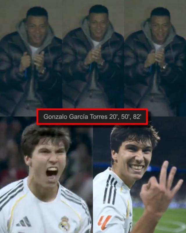 皇馬5比1貝蒂斯,大演帽子戲法的貢薩洛·加西亞是絕對主角。全場他射門3次,全部轉化為進球!且3粒進球各具特色——後點頭球吊射、胸停淩空世界波、搶點腳後跟巧射——完美展現其全能性和可塑性。去夏世俱杯貢薩洛就已一鳴驚人,奪得賽事金靴,但皇馬大牌眾多,賽季開始後他隻能與板凳為伍。此番姆巴佩受傷,貢薩洛得以第2次代表皇馬聯賽首發(上一次對西班牙人,與姆巴佩搭檔雙前鋒),便貢獻了如此炸裂演出,甚至看台上的姆巴佩也情不自禁一再為他鼓掌。