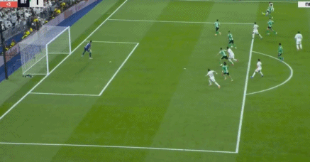 比賽開始後,場麵卻很快失去平衡。皇馬在主場迅速掌控節奏,持續從左路發動進攻。第3分鍾,威尼修斯完成第一次強突,下底倒三角回傳,巴爾韋德禁區外淩空掃射稍稍偏出,拉開了皇馬進攻序幕。