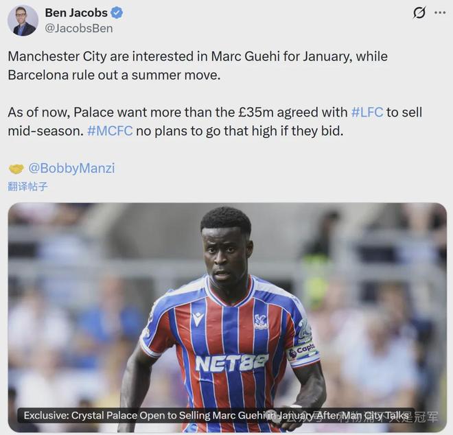 - 利物浦冬窗兩大目標都去曼城?水晶宮為什麽又願意賣格伊了?