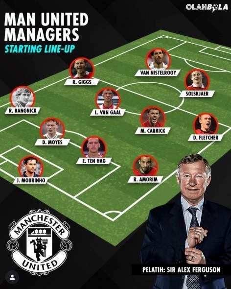 在弗萊徹擔任曼聯臨時主帥後,外國媒體olahbolacom在社交媒體上發布了一則有趣的帖子,他們表示,曼聯在後弗格森時代任命的教練能組成一套陣容。