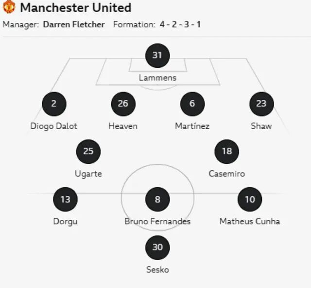 弗萊徹在比賽中先後換上萊尼·約羅、梅森·芒特以及阿莫林棄將齊爾克澤和科比·梅諾,他把最後一個換人名額給了小將謝伊·萊西,而不是自己的親生兒子傑克·弗萊徹,體現了自己的大公無私。弗萊徹的另一雙胞胎兒子泰勒,沒有進入比賽大名單。