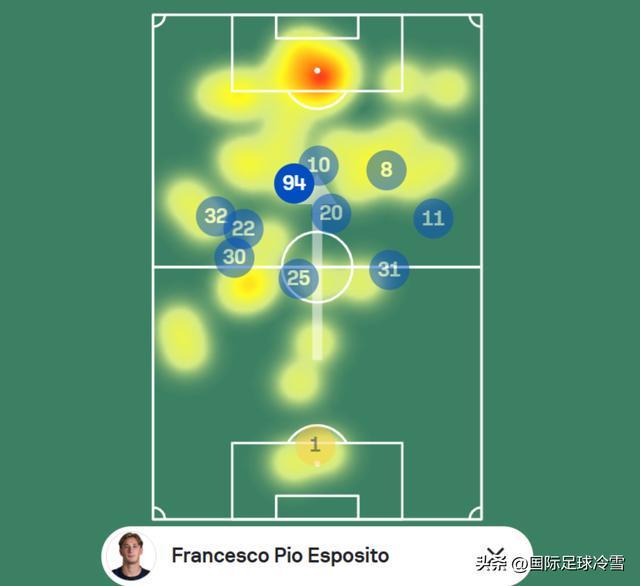 其中,皮奧·埃斯波西托的努力,是國米能夠拿下3分的關鍵——這當然不僅是因為,皮奧為國米首開紀錄的進球貢獻了助攻(雖然有些統計機構沒有將助攻算在皮奧頭上,但進球確實源於他繞前的搶點),也是因為,皮奧用9次對抗肉搏、每球必爭的努力、全場大範圍的跑動,給球隊提供了極大的支持