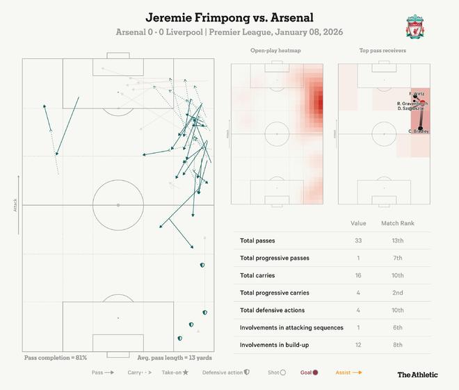 英超第21輪,阿森納主場0-0戰平利物浦,賽後,The Athletic發表專題文章,分析並點評了本場比賽。