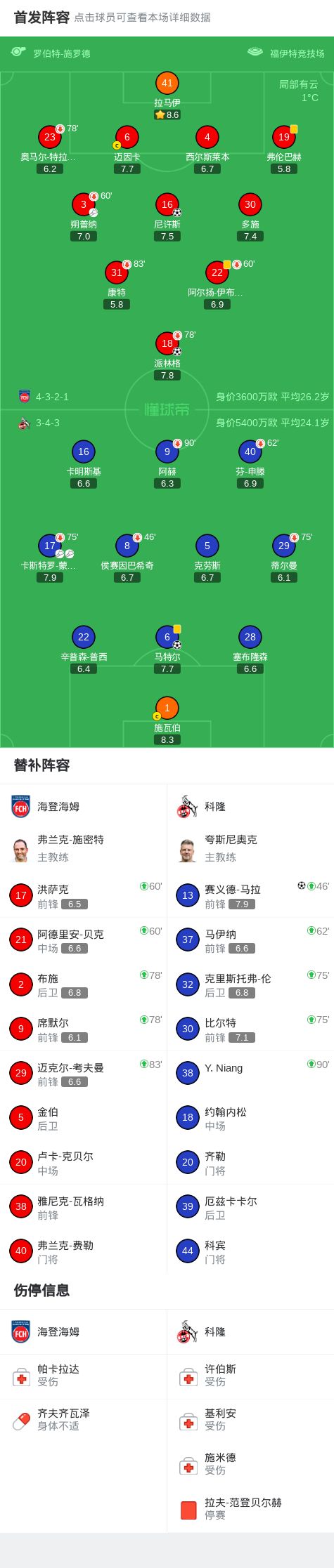 海登海姆2-2科隆,派林格首開記錄,賽義德-馬拉扳平比分
