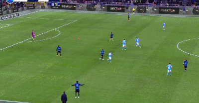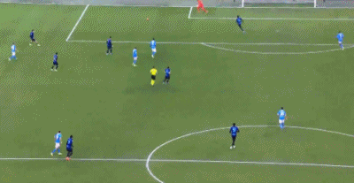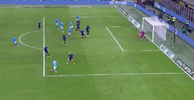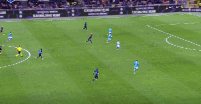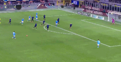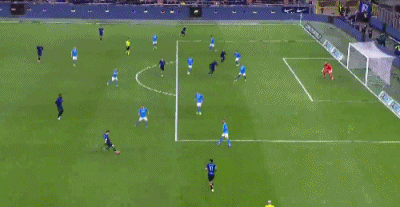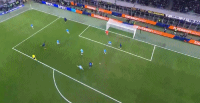 第9分鍾,圖拉姆助攻,迪馬爾科小角度抽射遠角破門,國米1-0那不勒斯