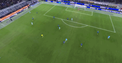 第42分鍾,迪馬爾科左路傳中,澤林斯基抽射打在隊友勞塔羅身上
