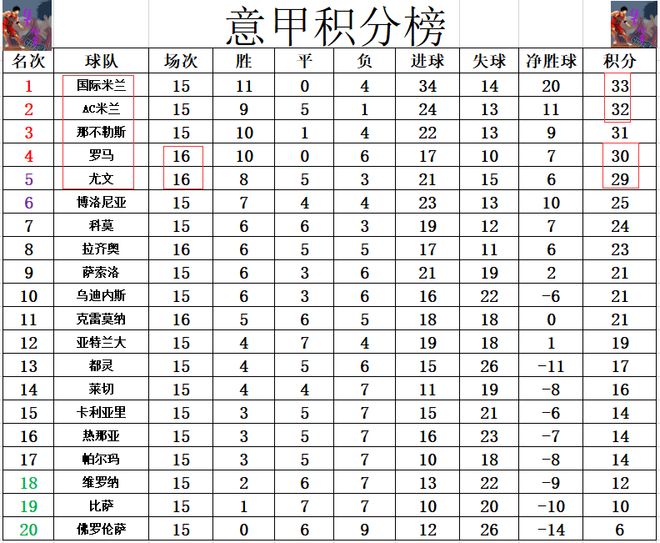 - 意甲最新積分戰報 爭4有望!尤文小勝羅馬 將分差縮小到1分